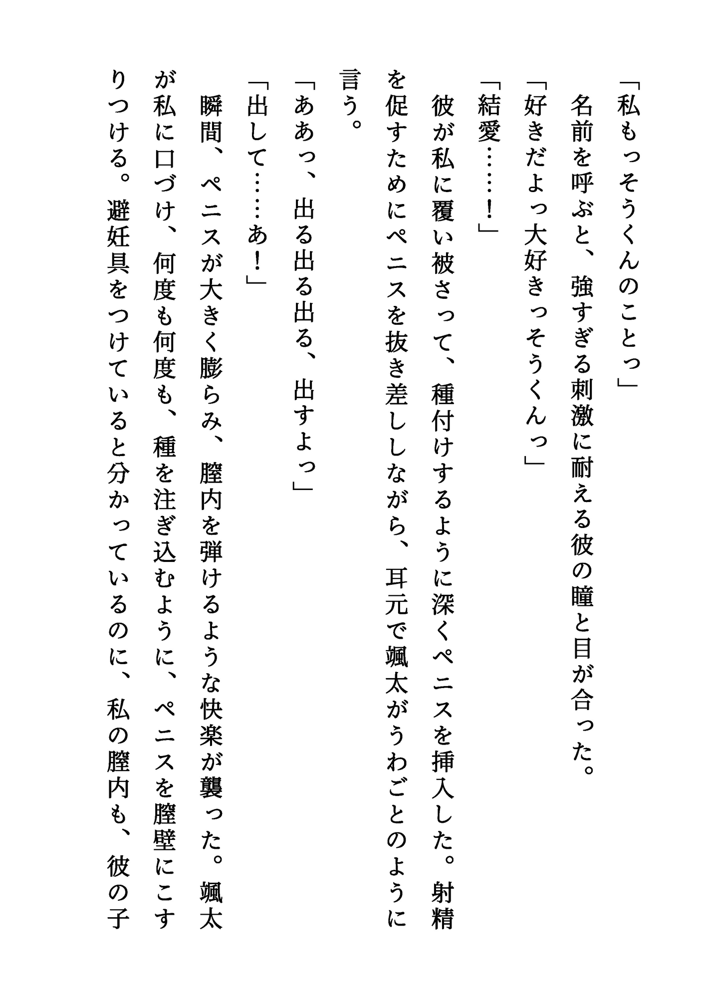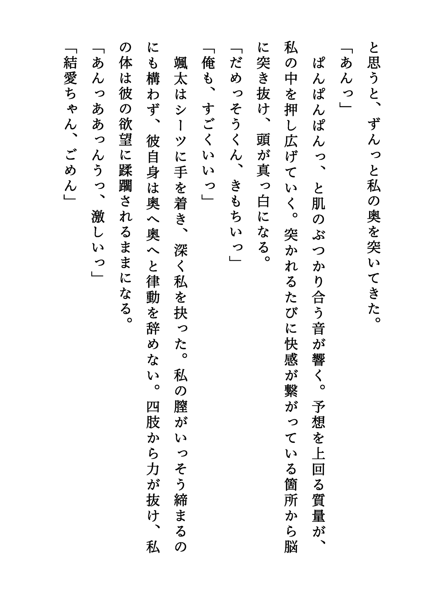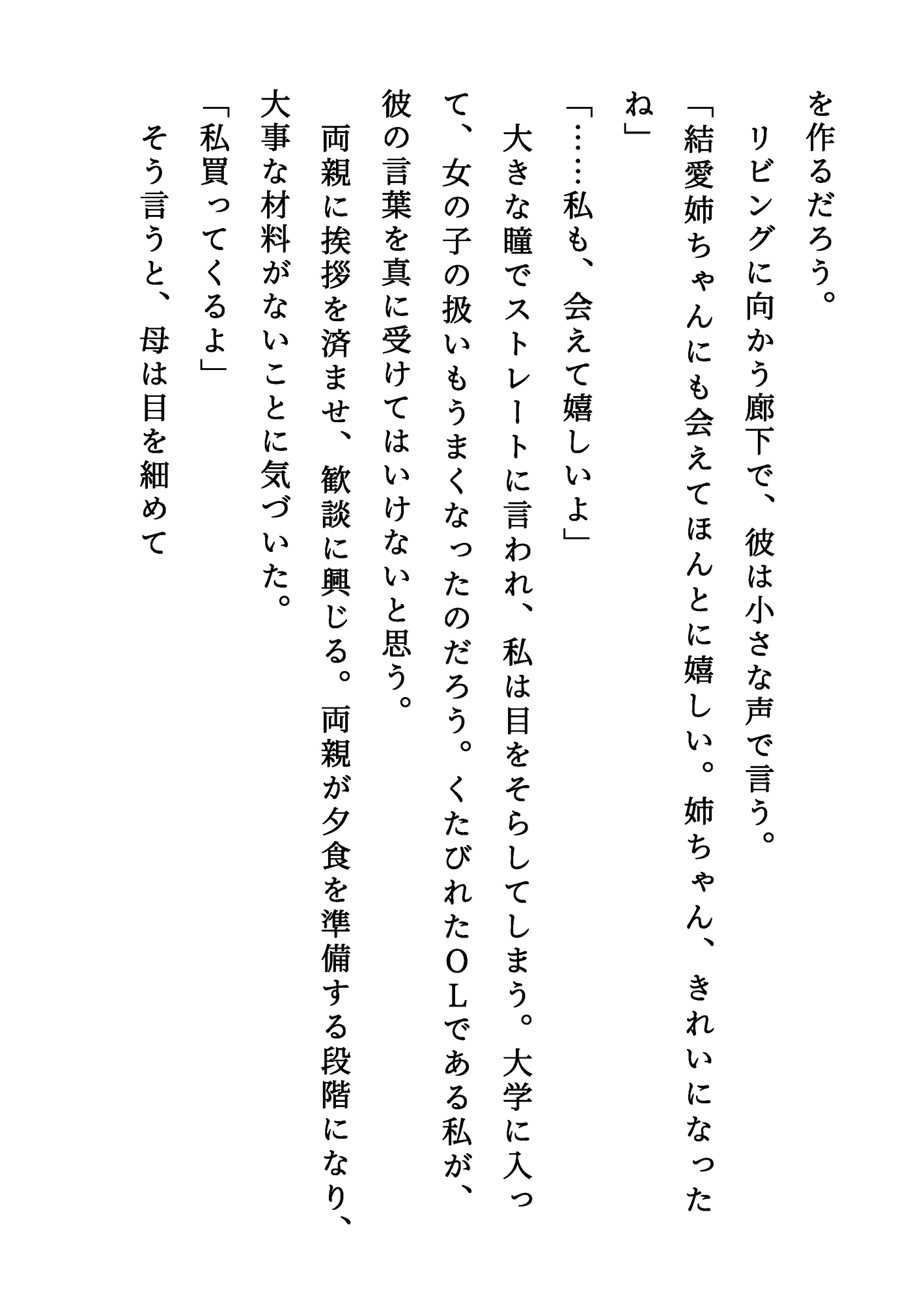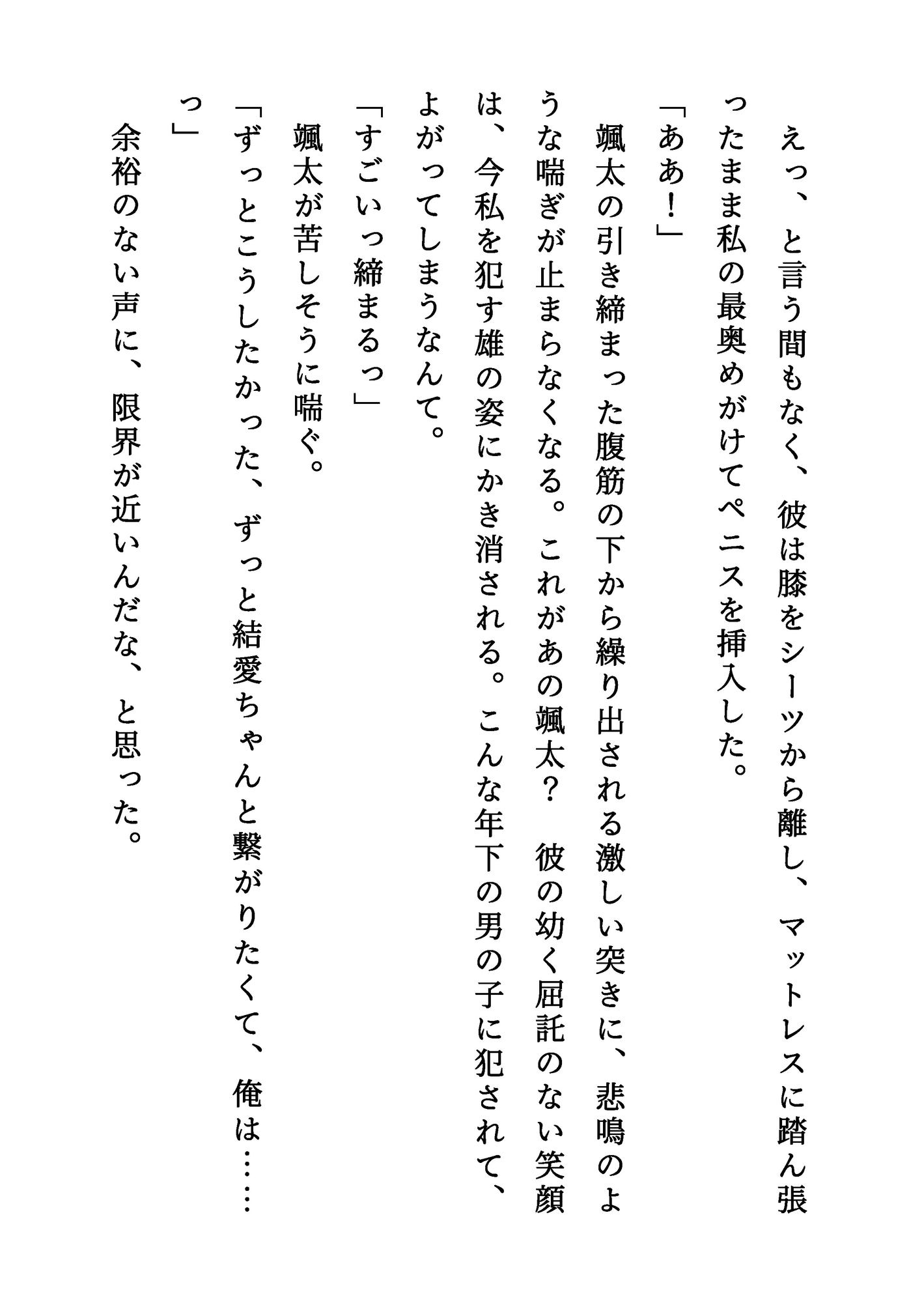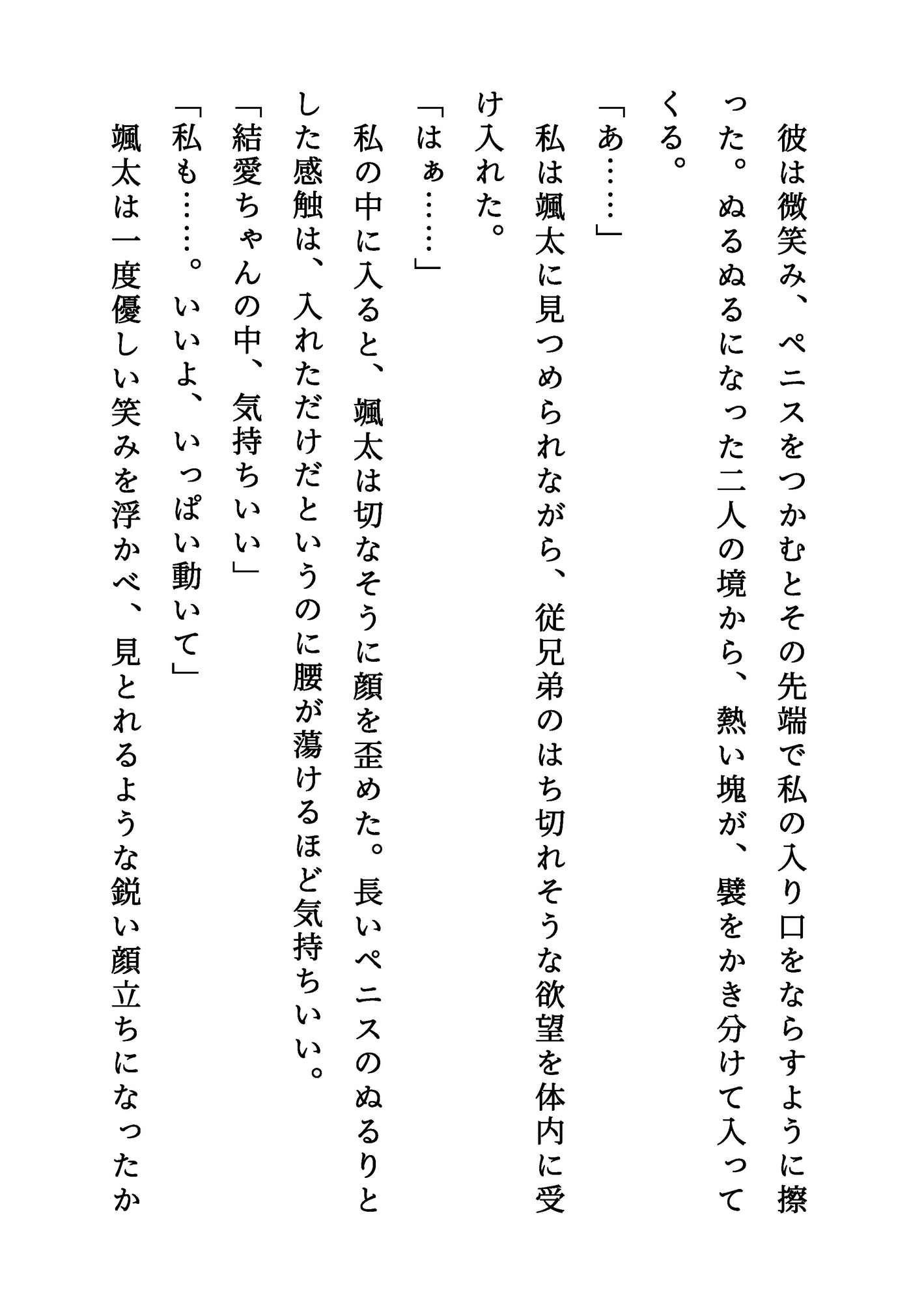 【登場人物】颯太(そうた):いとこの男の子。成人したばかり。結愛のことを幼いころから好きでいたが、ついに男として告白する。