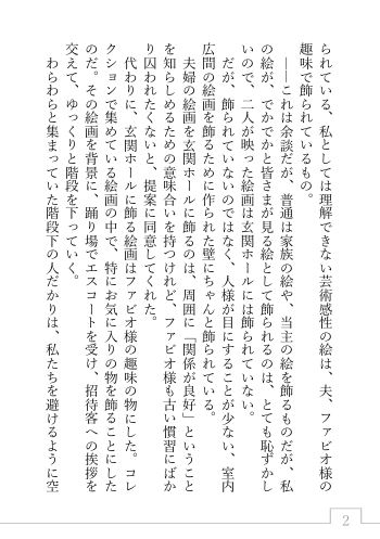 あなたとある王国の有力貴族の娘。自己評価が低く、繊細な性格だが、心の中では誰かの大切な人でありたいと思っている。人当たりが良く、使用人からも好かれているが、公爵夫人としての一線は引いている。夫を支えてこその妻、夫となる人間を不快にさせてはいけないと言う両親の教えもあったせいで、ファビオの言葉で無表情、無口になってしまう。社交界からは「夫の女癖の悪さのせいで心の病に掛かってしまった」と噂が広がっている。