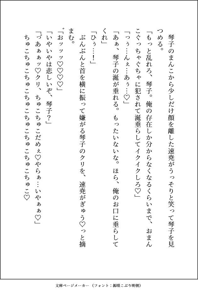 琴子(ことこ)栗色のふわふわの髪で大きな胸が自慢の天真爛漫な女の子だが、最近、トラウマが蘇ってきて嫌な感じ。見た目ドタイプで長い間、孤独に生きてきた速尭を幸せにしてあげたいと思っている。自分より何もかも優れている姉がいる。