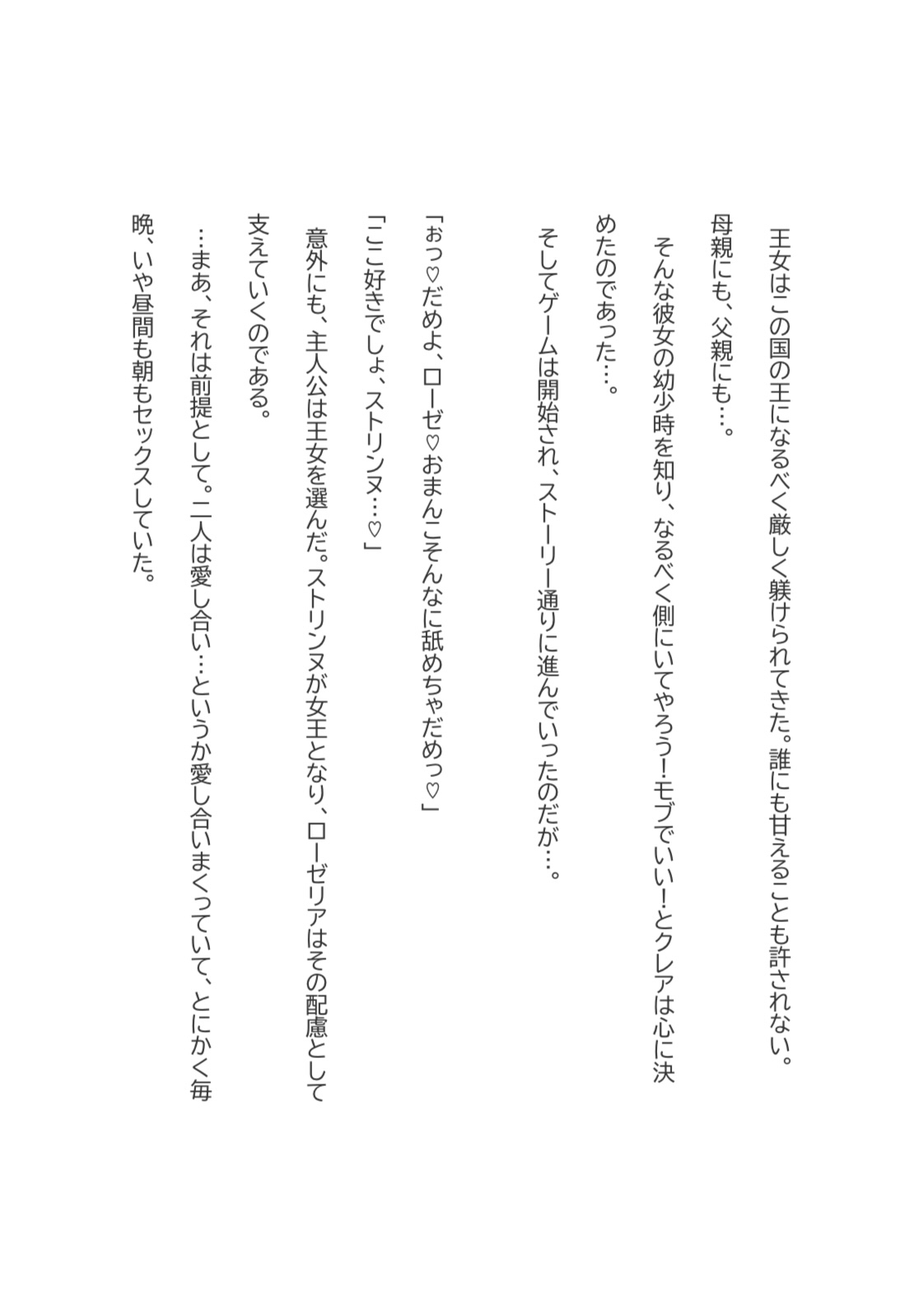 王女ヒロインが敵に下った竿役にヤられているわけだが、ほぼ堕ち掛かっているため、だらしなく顔を蕩けさせ、肉棒の快楽を求め、奴隷状態である。 とにかくスケベなママとエッチを楽しむ作品です。