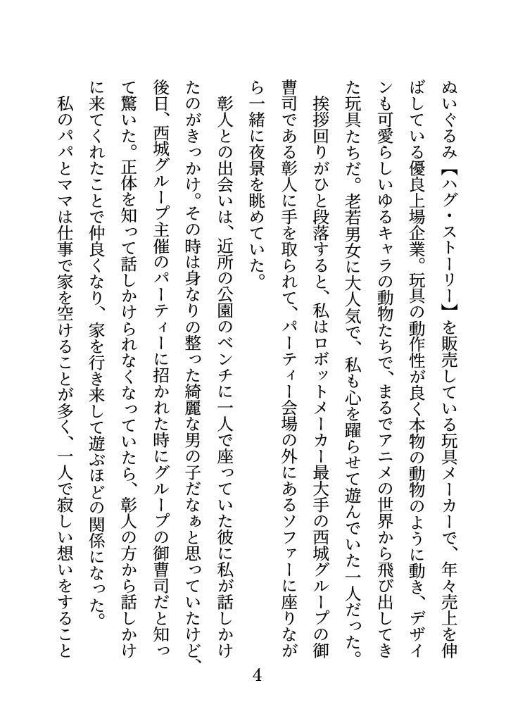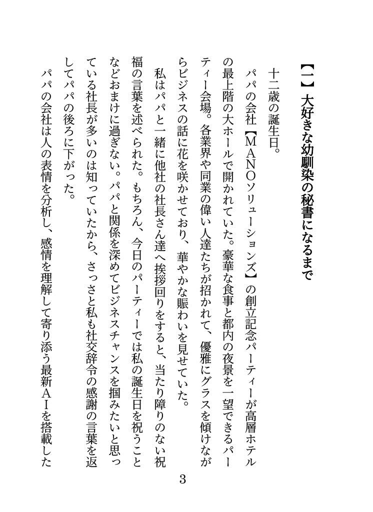 ◆あらすじ上場企業の玩具メーカー【MANOソリューションズ】の社長令嬢であった真野若菜は、幼馴染でロボットメーカー最大手の西城グループの御曹司である西城彰人に密かな恋心を抱いていた。幼い頃に出会ってからすぐに仲良くなった若菜と彰人。家を行き来して遊ぶほどの関係に発展し、両親が仕事で忙しく家にいなくて寂しい想いをしていた若菜はいつも隣で励ましてくれる彰人のことを大好きになってしまっていた。そんな若菜は将来、彰人と結ばれることを想像して頭から湯気が湧いてきてしまう日々を過ごしていたが、高校生になった16歳の時――。