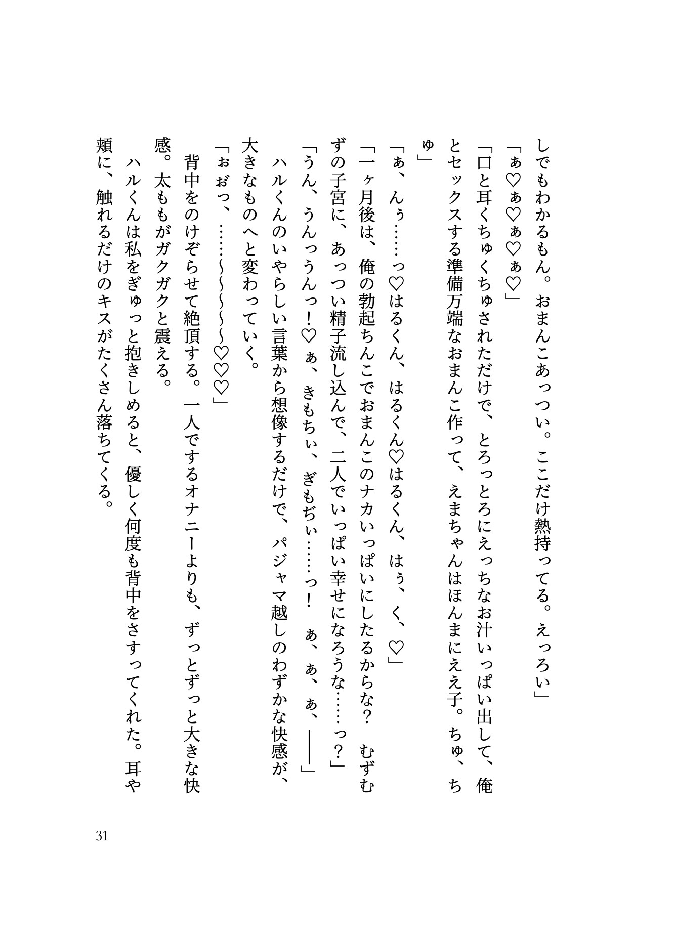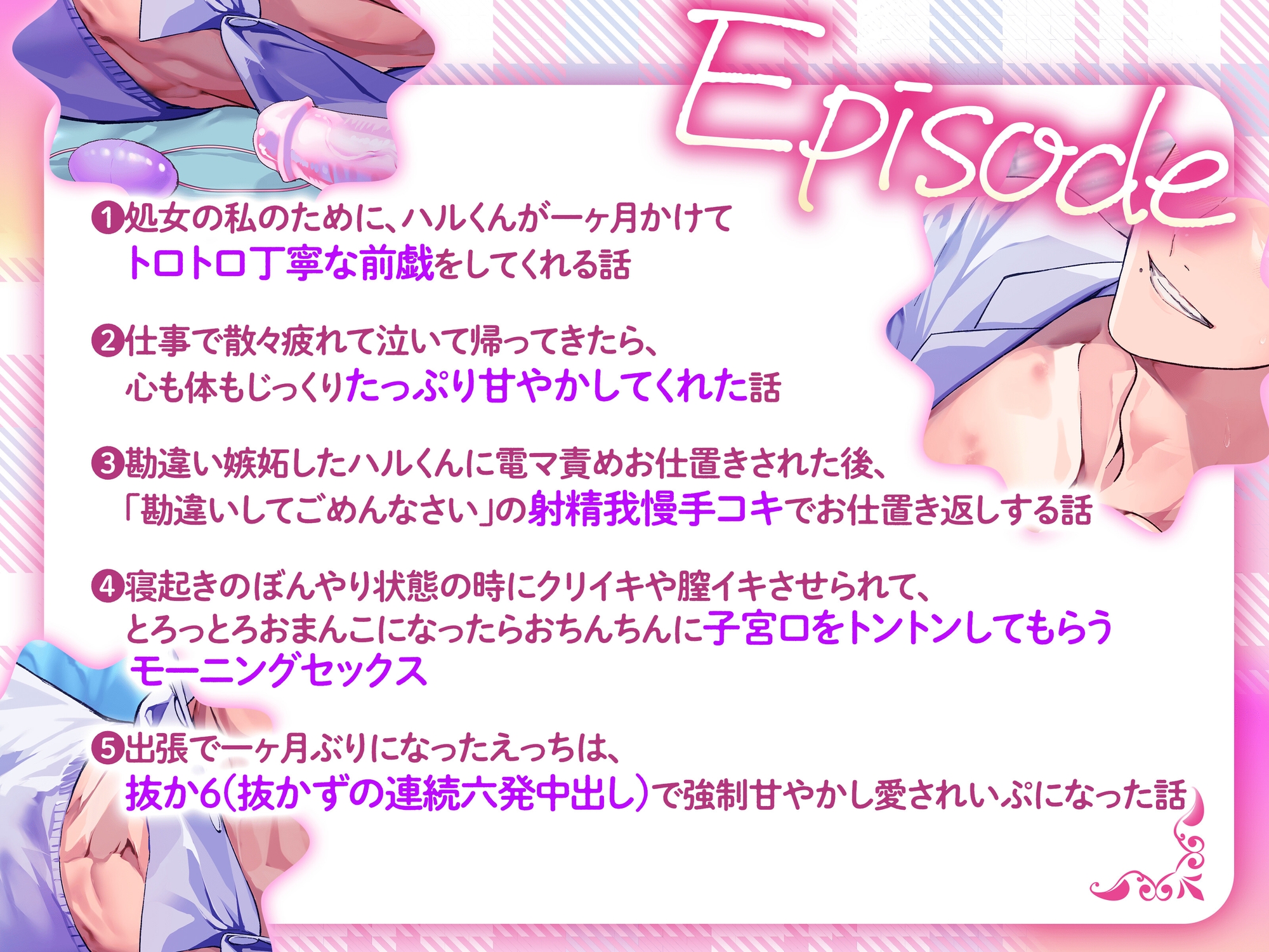 【主人公】※名前あり「えま」関東出身。27歳。ハルと同じオフィスビルのデザイン会社に勤めている。ハルとは付き合ってもうすぐ5年。 (1)処女の私のために、ハルくんが一ヶ月かけてトロトロ丁寧な前戯をしてくれる話(2)仕事で散々疲れて泣いて帰ってきたら、心も体もじっくりたっぷり甘やかしてくれた話(3)勘違い嫉妬したハルくんに電マ責めお仕置きされた後、「勘違いしてごめんなさい」の射精我慢手コキでお仕置き返しする話(4)寝起きのぼんやり状態の時にクリイキやイキさせられて、とろっとろおまんこになったらおちんちんに子宮口をトントンしてもらうモーニングセックス(5)出張で一ヶ月ぶりになったえっちは、抜か6(抜かずの連続六発中出し)で強○甘やかし愛されいぷになった話)