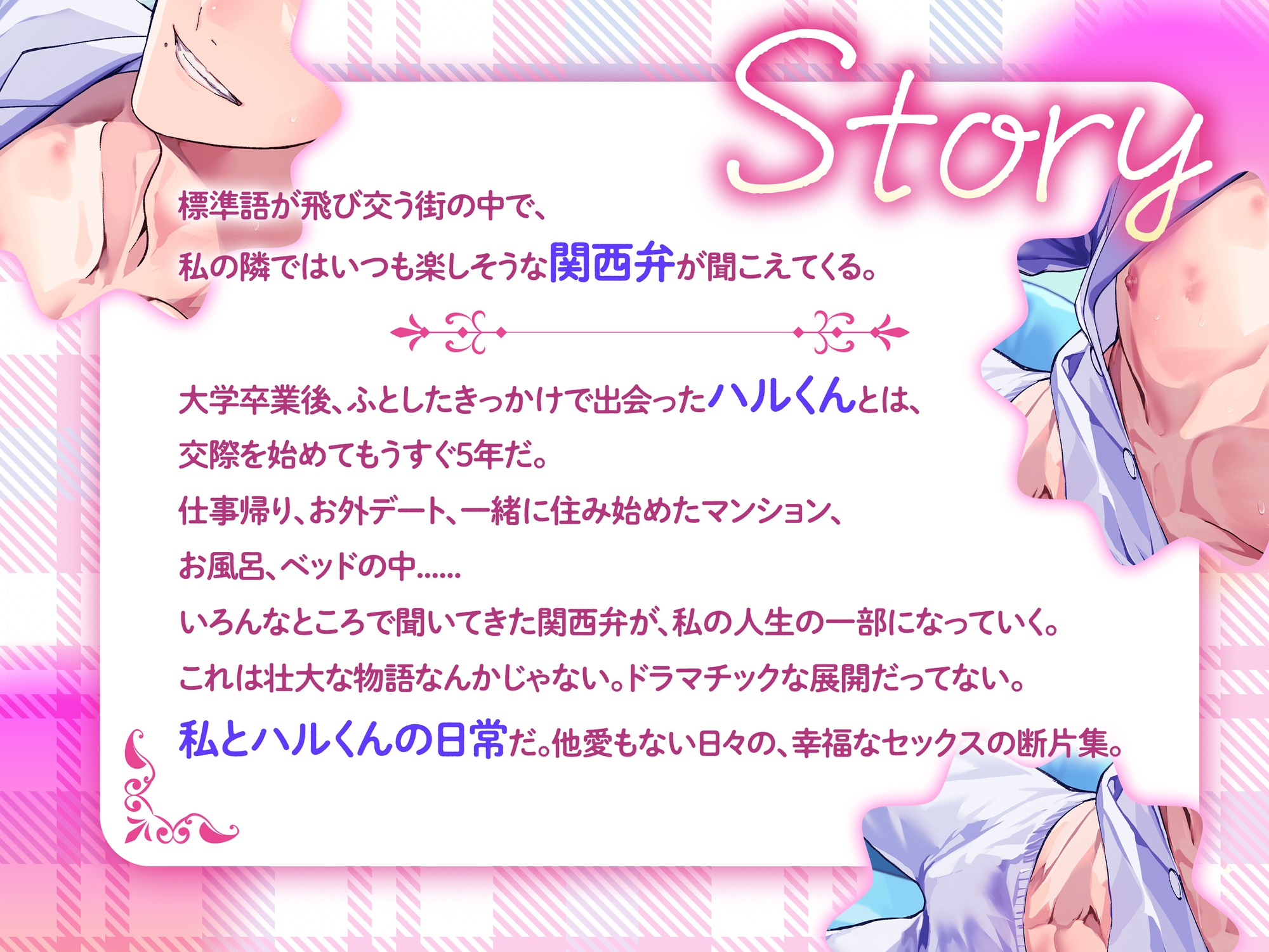 【STORY】標準語が飛び交う街の中で、私の隣ではいつも楽しそうな関西弁が聞こえてくる。大学卒業後、ふとしたきっかけで出会ったハルくんとは、交際を始めてもうすぐ5年だ。仕事帰り、お外デート、一緒に住み始めたマンション、お風呂、ベッドの中...いろんなところで聞いてきた関西弁が、私の人生の一部になっていく。