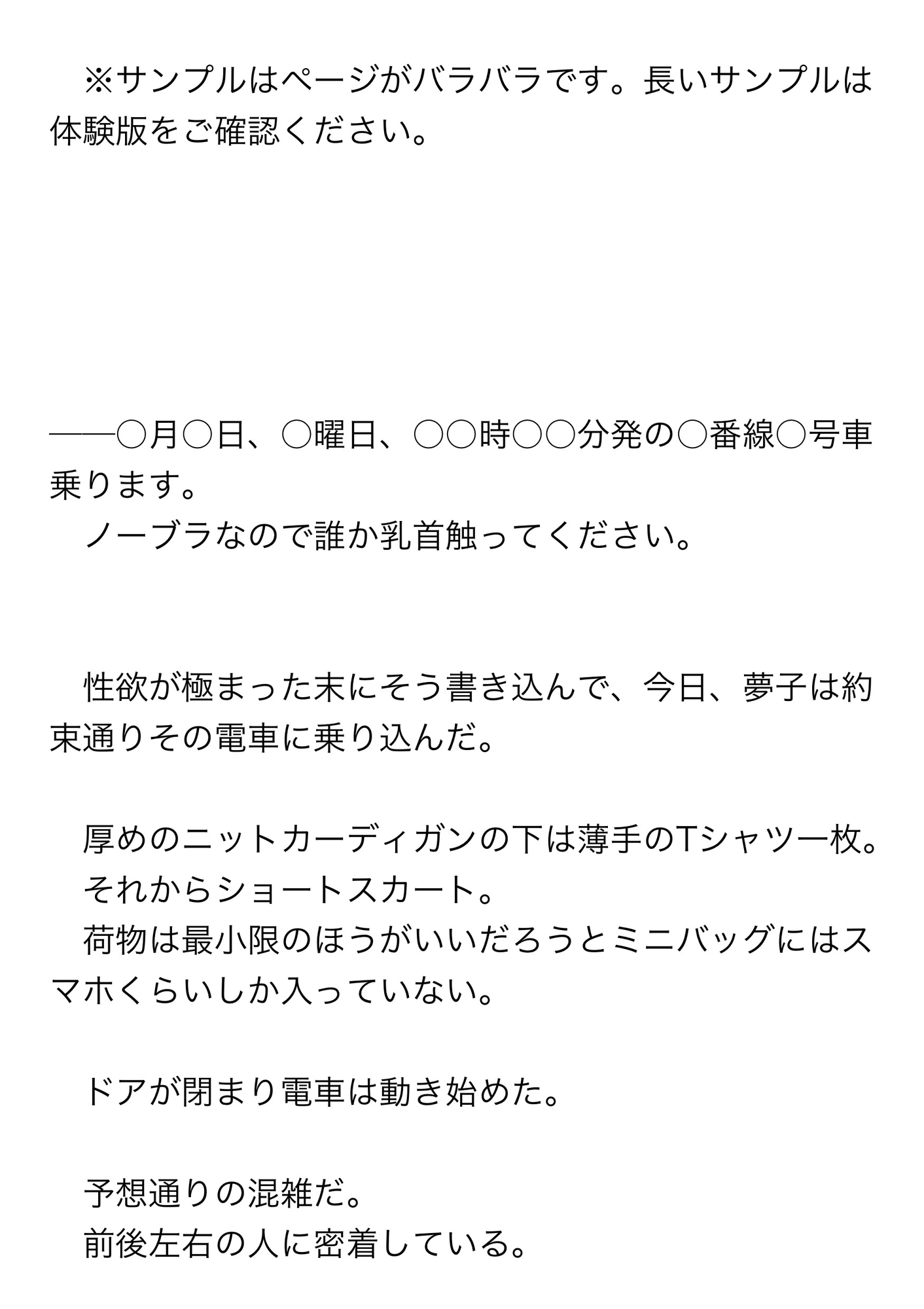 性欲が極まった末にそう書き込んで、今日、夢子は約束通りその電車に乗り込んだ。