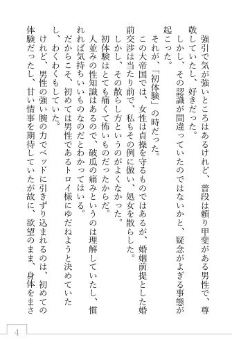 トロイに嫌われない一心で嫌な行為であっても求められれば答えてきたが、嫌々相手にしている態度が伝わってしまい、身体の相性が良い女性に乗り換えられる。