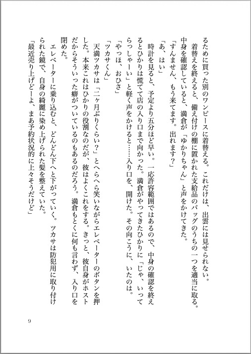 ・天満 ツカサ営業のため「ゆかり」を指名したところから親友となった人気ホスト。「ゆかり」に対し友人として強い仲間意識を持っている。しかしその裏側にはある感情が交錯しており…?