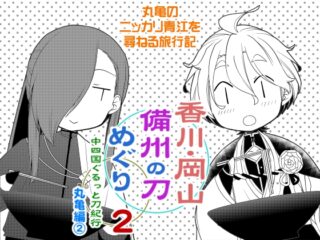 香川・岡山の旅行記その2です。この巻ではうどんを食べたり博物館で刀のニッカリ青江を見たり丸亀城大手門を覗いたり。出てくる刀は歌仙さんとにっかり青江です。