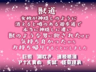 獣道~女性が神隠しのように消えると噂のある遊歩道で、本当に神隠しに遭い獣のような男に●されたけど、気持ち良かったからお持ち帰りすることにしました