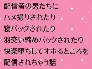 配信者の男たちにハメ撮りされたり寝バックされたり羽交い締めバックされたりして快楽堕ちしてオホるところを配信されちゃう話