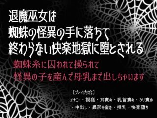 退魔巫女は蜘蛛の怪異の手に落ちて終わらない快楽地獄に堕とされる蜘蛛糸に囚われて操られて怪異の子を産んで母乳まで出しちゃいます【あらすじ】退魔師であるあなたは巷を...
