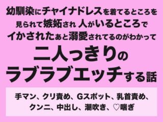幼馴染にチャイナドレスを着てるところを見られて嫉妬され人がいるところでイかされたあと溺愛されてるのがわかって二人っきりのラブラブエッチする話