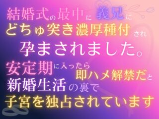 結婚式の最中に義兄にどちゅ突き濃厚種付され、孕まされました。「安定期に入ったら即ハメ解禁だ」と、新婚生活の裏で子宮を独占されています