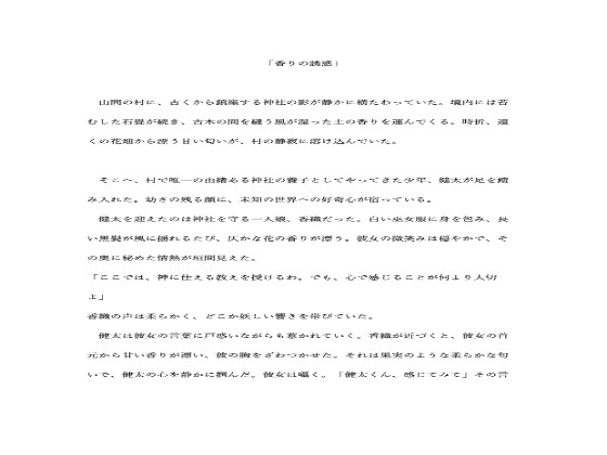 『私』と佳織は十五歳離れた仲のいい夫婦だ。小学生の子供が二人いる。佳織は気だての優しい、良妻賢母の美しい女性だ。