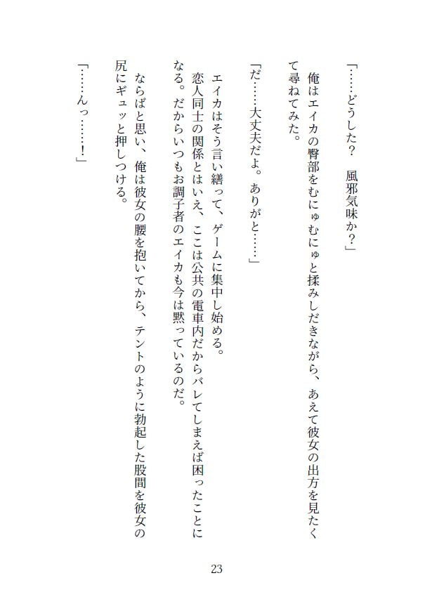 そして電車の中でとうとう劣情を爆発させた俺は、エイカが決して浮気しないよう躾けるべく、彼女を淫らに痴漢し始めた……。