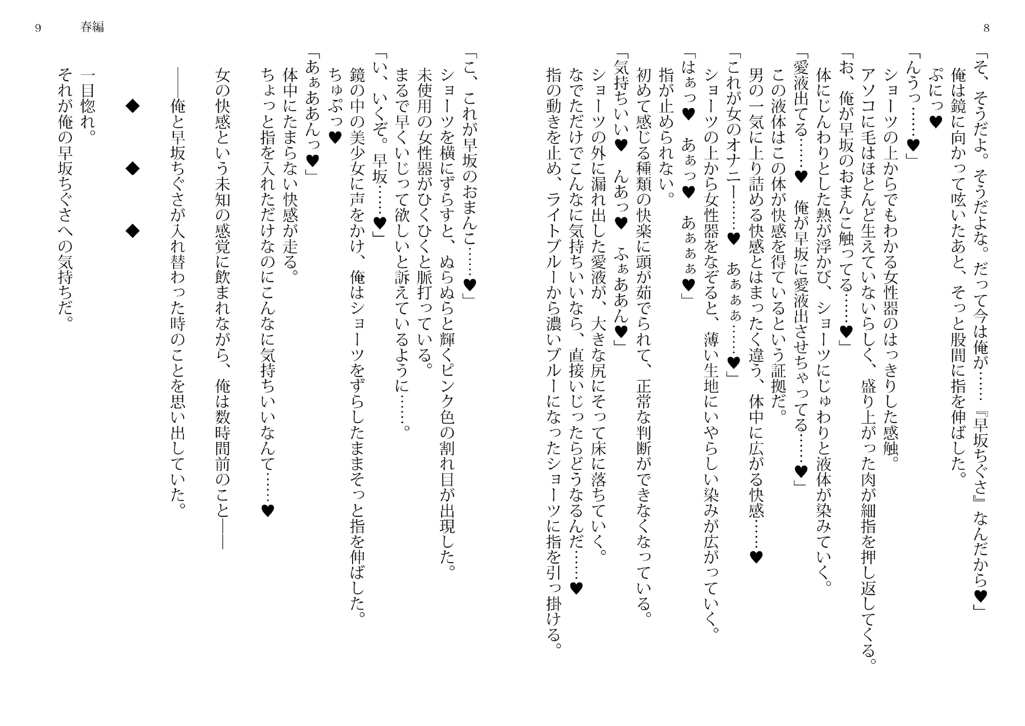 お互いになりすますことを決めた俺たちは異性の生活を過ごすことになるが……快感に翻弄されて暴走することもしばしばだ。