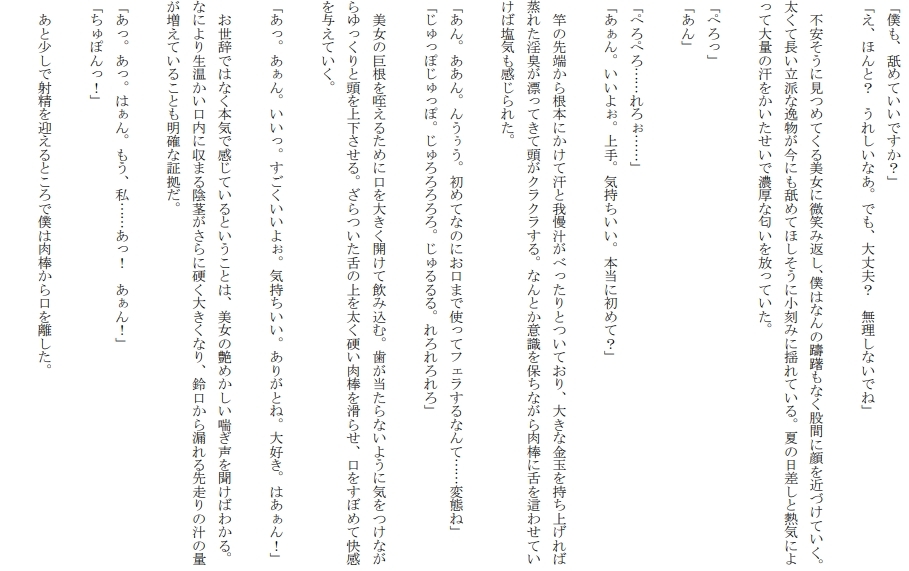 ヒロインのチン嗅ぎからフェラをするシーンがめちゃシコでした。自分の使っているPC環境上 DLsiteで同人作品を扱ってくれたら非常にありがたいのにな・・・と思い続けていた作家さんの一人です。(部長が羞恥心無さそうなキャラだったのだけちょっと残念だった)