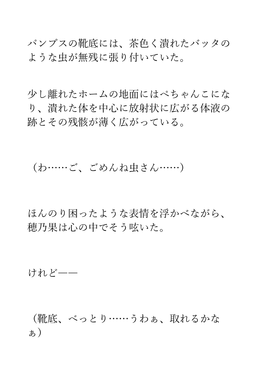 そんな先輩が、パンプスを履いたまま無意識に虫を踏み潰している光景を目撃してから、