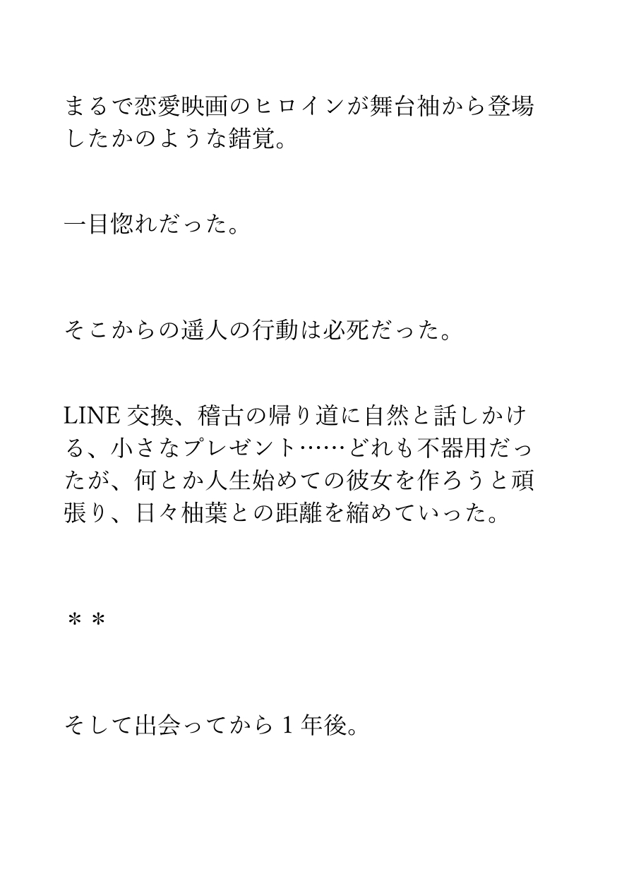 岸本遥人(20)は大学の演劇サークルで同級生の天野柚葉(20)と出会い一目惚れ。遥人の猛アプローチで恋人同士となり、幸せな日々を送っていた。