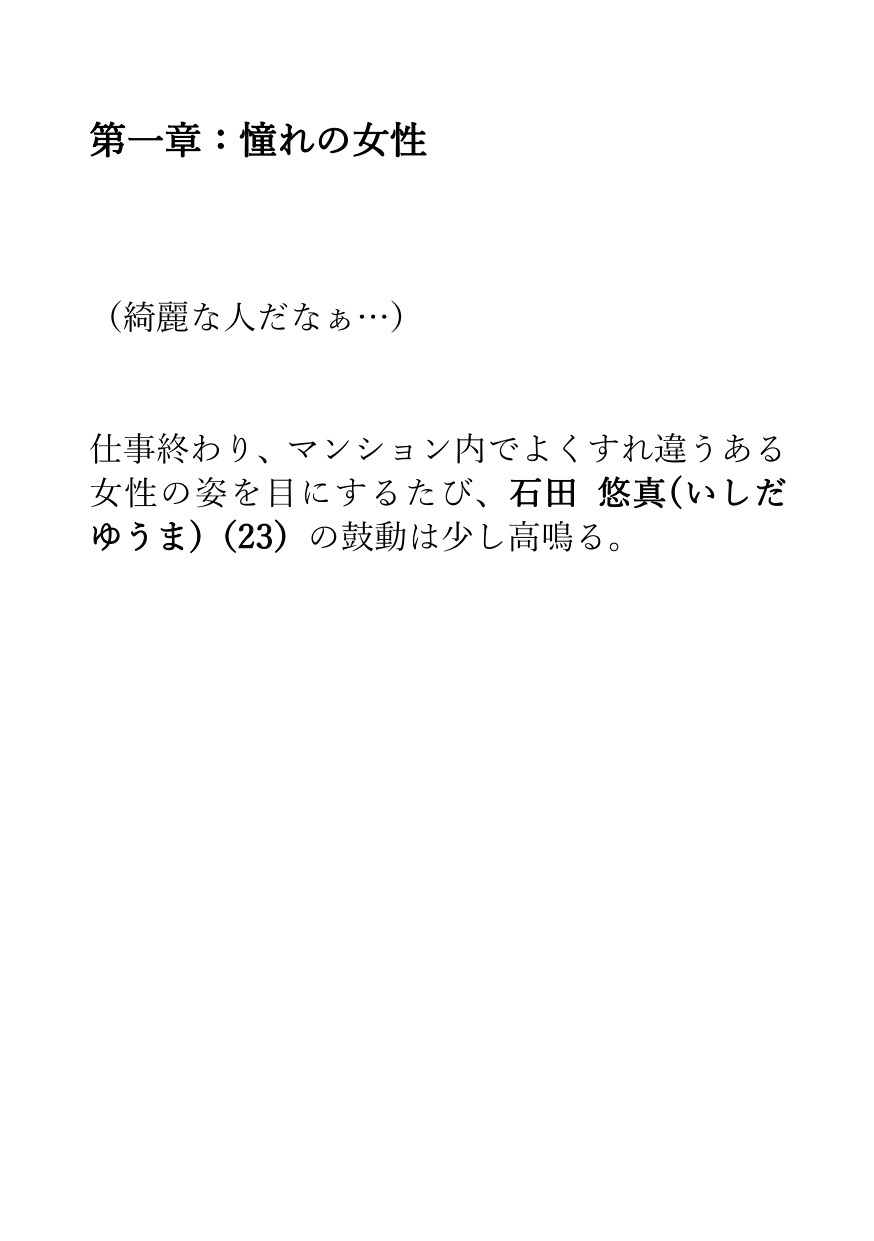 女性の足の匂いフェチの主人公、石田悠真(23)は、同じマンションに住んでいる大人の女性・笹原綾乃(30)に密かに好意を寄せていた。