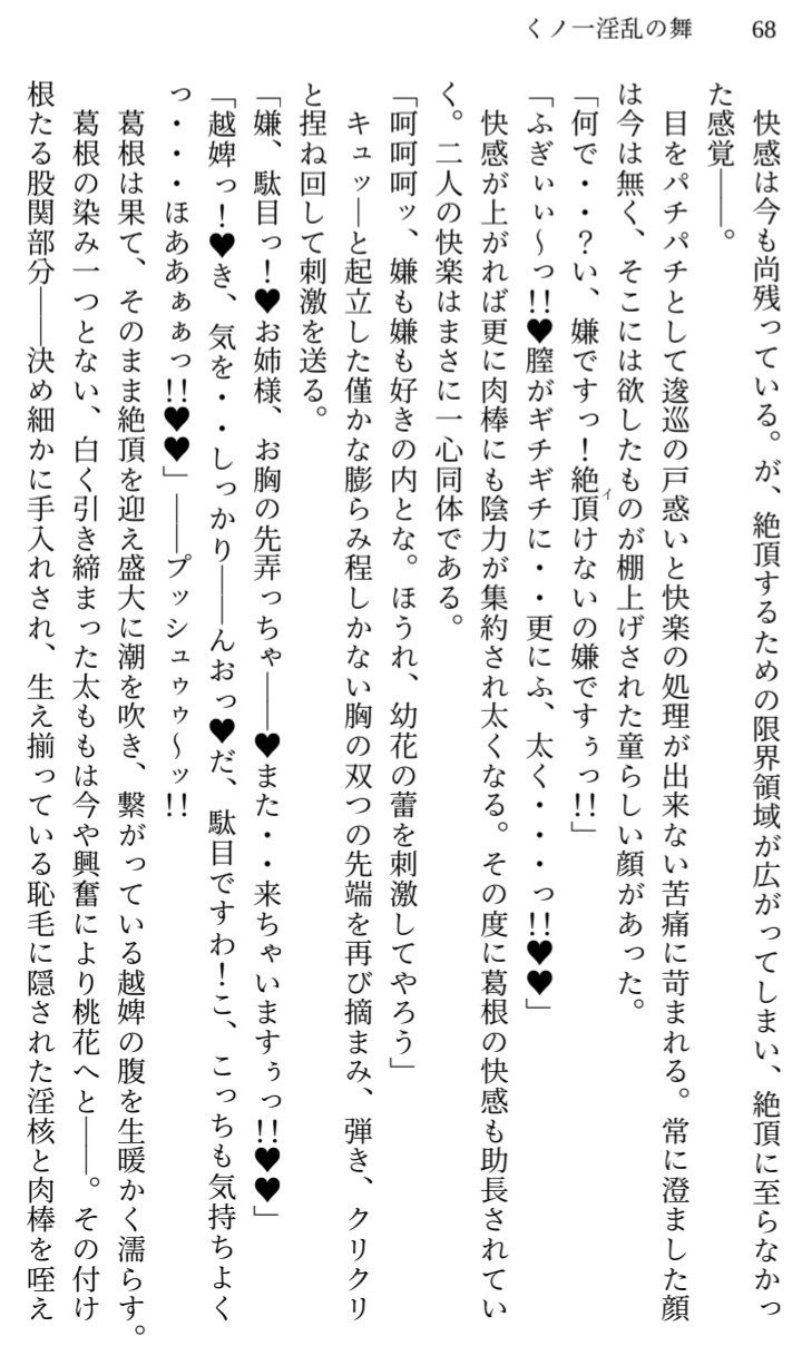 〜内容〜・変態老忍の幻術によって憧れのお姉様を見せられながら性開発され、なすすべ無く絶頂をさせられた後、傀儡にされる後輩○リくノ一。・傀儡にされふたなり化した後輩○リくノ一に襲われ、初めて性の悦びを教え込まれてしまう先輩お嬢様くノ一。・射精を封じられて苦しむふたなり後輩○リくノ一が尻穴を刺激されて盛大に先輩お嬢様くノ一の膣内に絶頂射精!・膣内に射精され発情暴走した先輩お嬢様くノ一がふたなり後輩○リくノ一を押し倒して騎乗位で襲うも、最後は尻穴を刺激されながら下からふたなりち◯こで突き上げられて絶頂させられる。・ダブル手マンで二人同時潮吹き絶頂させられる。