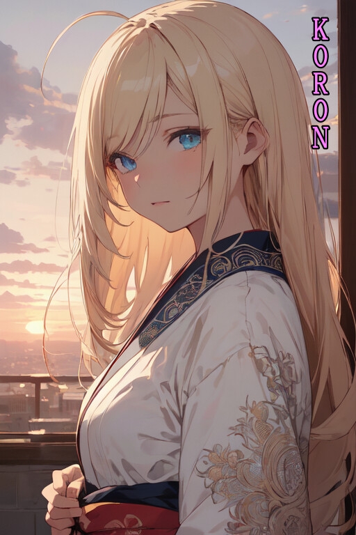 女子はアニメスタイルになるよう、瞳の大きさなどの数値微調整。で、色付けと背景(ここは海外AI生成サイトに任せた、販売掲載フリーなところの)はAIさんに丸投げ。