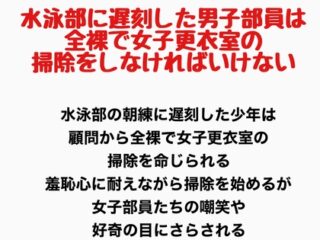 水泳部に遅刻した男子部員は、全裸で女子更衣室の掃除をしなければいけない